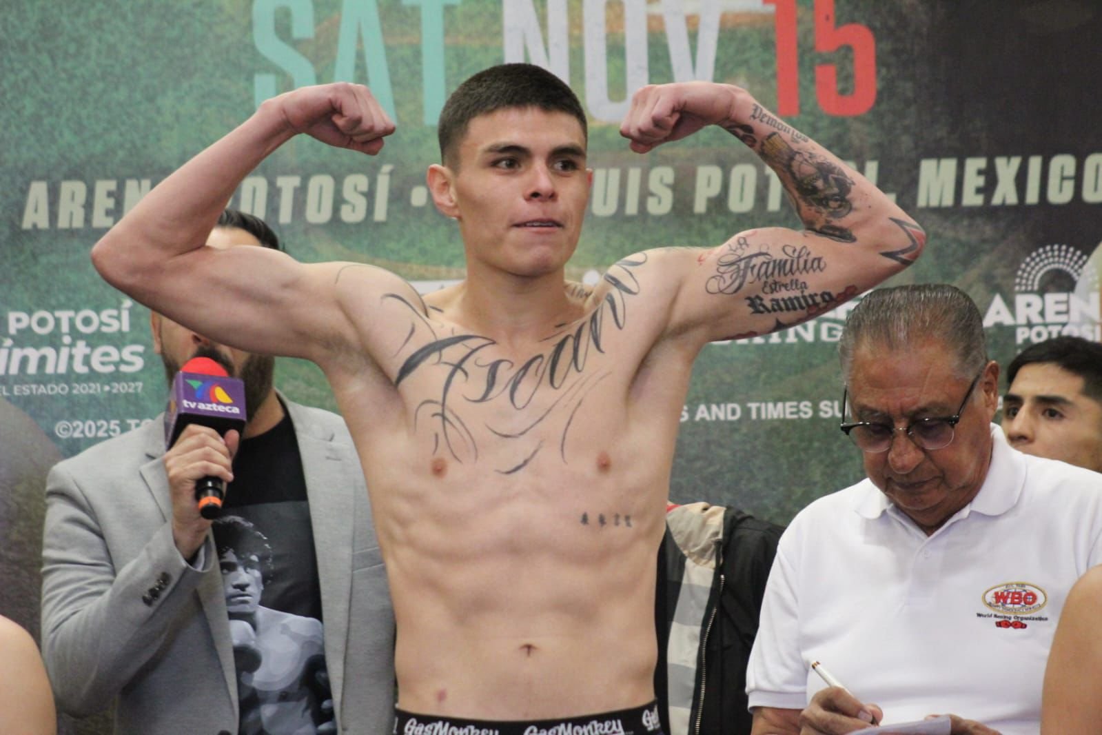 San Luis Potosí se encuentra preparado para una noche memorable con la función de boxeo profesional organizada por Zanfer Boxing, respaldada por el Gobernador Ricardo Gallardo Cardona, cuyo impulso sin límites ha permitido traer espectáculos de talla mundial a la entidad. En la ceremonia oficial de pesaje, Rafael “El Divino” Espinoza y Arnold Khegai superaron sin contratiempos la báscula en la división pluma, dejando todo listo para disputar el Campeonato Mundial de Peso Pluma WBO ante un público que promete abarrotar la Arena Potosí.
