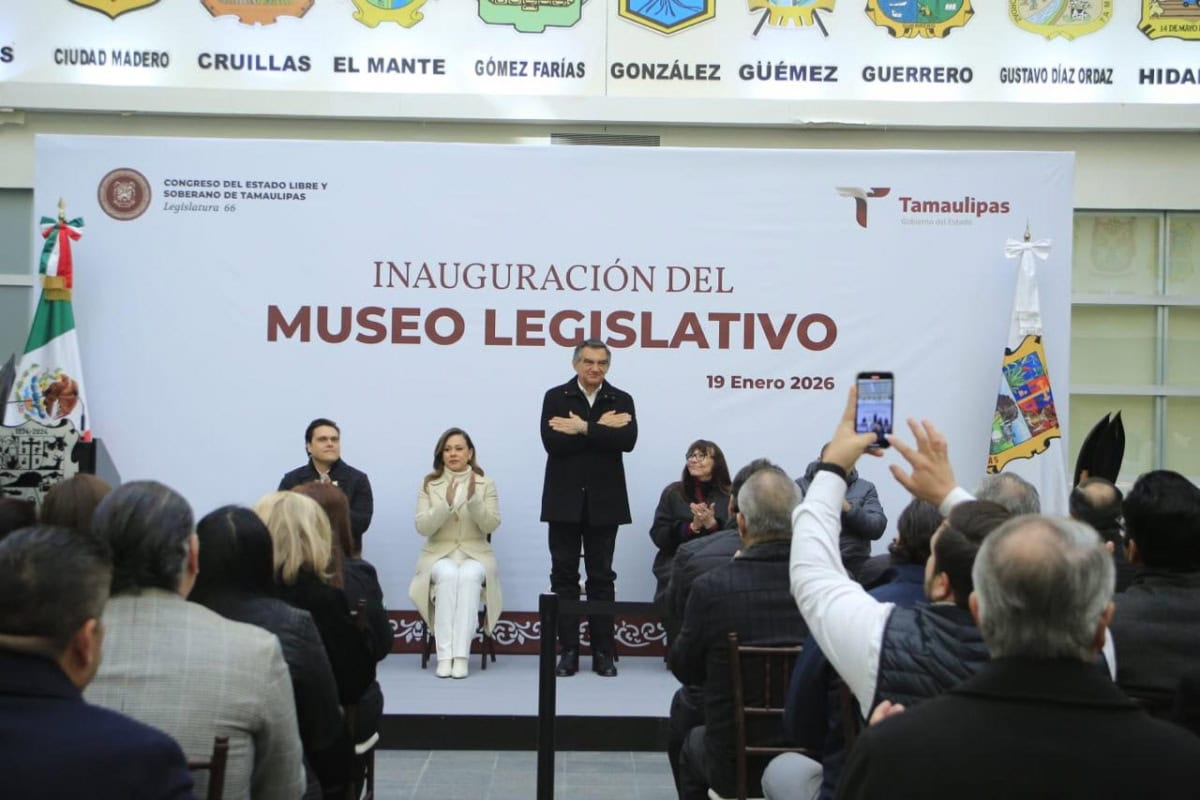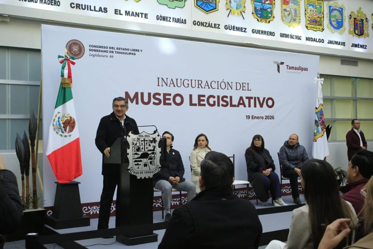 Enero 19 de 2026 Ciudad Victoria, Tamaulipas.- Al destacar la reducción en el índice general de delitos en la mayoría de los 98 indicadores que mide el Secretariado Ejecutivo del Sistema Nacional de Seguridad Pública, el gobernador Américo Villarreal Anaya destacó que este significativo avance es posible a la unidad de cada una de las instituciones de los Poderes del Estado y de las fuerzas de seguridad que hacen su parte. Durante la Ceremonia Cívica de Honores, este lunes en el Congreso del Estado, junto con el presidente del Poder Legislativo, Humberto Prieto y la presidenta del Poder Judicial, Tania Contreras, y en el marco de la inauguración del Museo Legislativo, el jefe del Ejecutivo afirmó que la estrategia de seguridad, a diferencia del pasado, da resultados con el propósito de acotar a la delincuencia y arribar a un Estado de derecho que ahora avanza con toda claridad. «Tenemos claro que si la seguridad en Tamaulipas es algo que mejora de manera sustantiva, que se mide en los números y se siente en la percepción ciudadana es porque participamos en unidad con ética y compromiso», dijo. Asimismo, hizo un reconocimiento al aporte del Poder Legislativo que ha estado a la altura, dijo, del desafío con reformas y actualizaciones del marco jurídico necesario y llamó a continuar la unidad y el diálogo entre poderes y con el pueblo de Tamaulipas. «Que este trabajo lo hagamos más visible y que no sea desvirtuado por unos cuantos que señalan que vamos en sentido contrario a lo que mostramos objetivamente día con día, con respeto a nuestros principios y valores», expresó. Y agregó: No dejemos que los medios, las redes, sean cooptados por páginas pagadas a ingenieros del caos y pauten con su poder económico, para generar emociones en base a la mentira, a la hipocresía, por no convenirles el bienestar social, la justicia y una distribución más justa de la riqueza. Sigamos trabajando unidos por el gran Tamaulipas que queremos». CON EL LIDERAZGO DE AMÉRICO VILLARREAL TAMAULIPAS TIENE FUTURO CIERTO: HUMBERTO PRIETO Por su parte el diputado Humberto Prieto Herrera hizo un amplio balance del trabajo de la 66 Legislatura y afirmó que con el liderazgo de Américo Villarreal Tamaulipas ha tomado otro rumbo y se ha trazado una ruta de claridad y de futuro cierto para nuestra gente. «Hoy puedo asegurar que respiramos un clima distinto, que tenemos un Estado de derecho, que se cuidan los derechos humanos, las garantías individuales, la libertad de expresión. Que hoy el Gobierno del Estado que encabeza nuestro gobernador no rehuye a la gente y no pierde de vista lo más importante que es el bienestar de las y los tamaulipecos», mencionó. Al término de la ceremonia de honores se realizó la inauguración del Museo Legislativo, ubicado a la entrada del salón de sesiones, el cual exhibe documentos históricos, fotografías de personajes ilustres como Jesús Cárdenas Duarte, Guadalupe Victoria, Fidencio Trejo Flores, Juan José de la Garza Galván y Guadalupe Mainero Juárez, así como imágenes de los diferentes escudos del Estado a lo largo de la historia y del himno a Tamaulipas, entre otros.