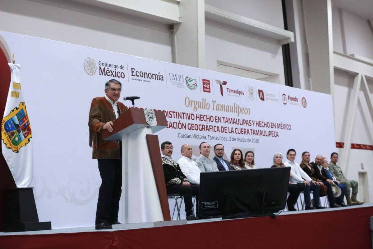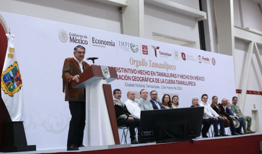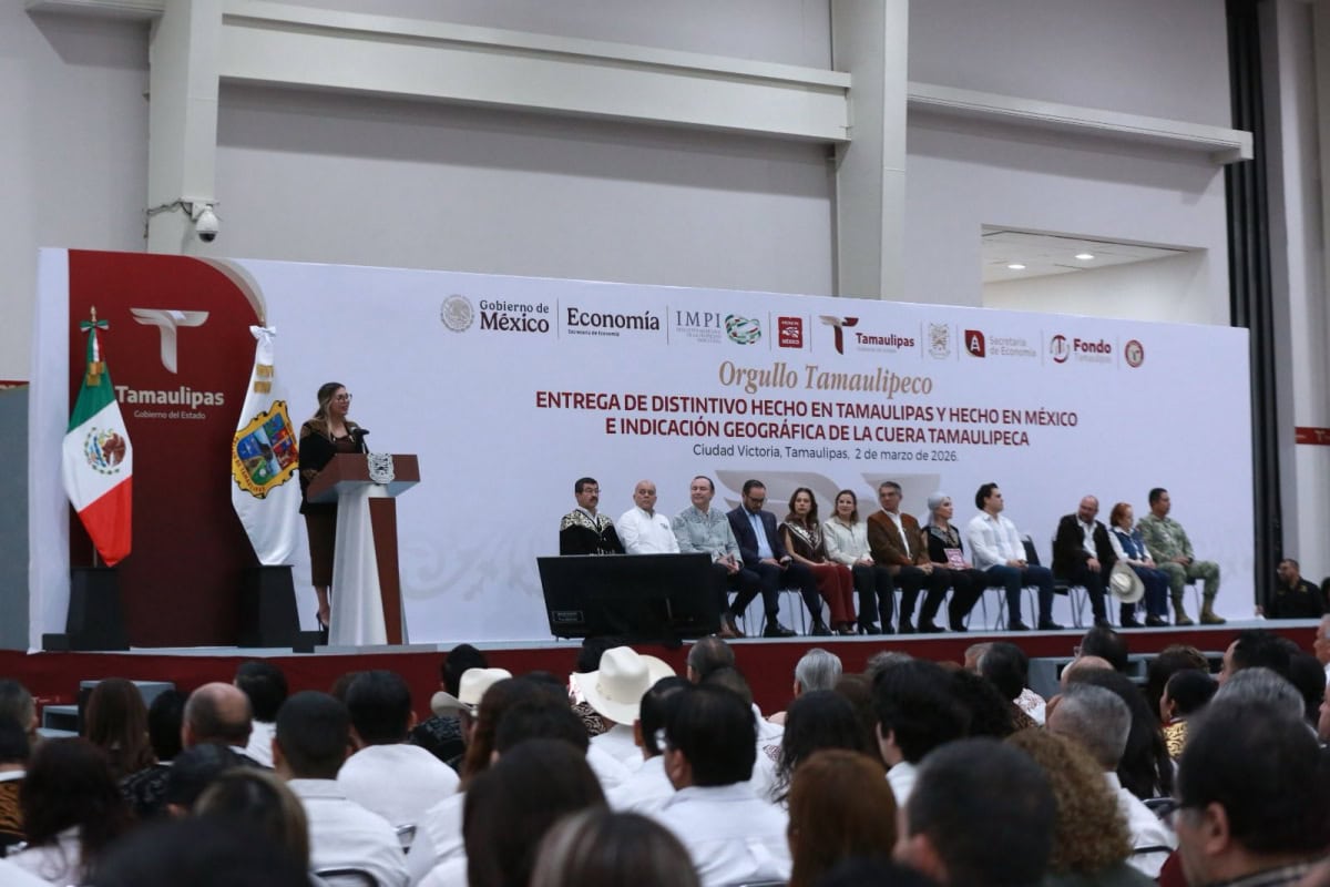 Marzo 02 de 2026 Ciudad Victoria, Tamaulipas.- Tamaulipas es un estado que está en su mejor momento, afirmó aquí la directora del Plan de Marca Nacional “Hecho en México”, María Bárbara Botello Santibáñez, quien reconoció que Américo Villarreal Anaya “es un gobernador que tiene una visión muy clara y que sabe que hoy México tiene una política industrial. Desde aquí vamos a producir lo que México necesita”. “Vamos a exportar desde aquí lo que se produzca, porque aquí tenemos talento, tenemos compromiso y tenemos también muchas ganas de demostrar, desde Tamaulipas, que lo hecho en Tamaulipas y lo hecho en México está mejor hecho”, expresó la representante del secretario de Economía, Marcelo Ebrard, al encabezar junto al gobernador del Estado la ceremonia de entrega del distintivo Hecho en Tamaulipas y Hecho en México y la Indicación Geográfica de la Cuera Tamaulipeca. En un emotivo evento en el Polyforum de esta capital, en el marco de la ceremonia cívica de honores, el gobernador Villarreal Anaya realizó la entrega de diez certificados de “Orgullo Tamaulipeco” a emprendedores de diferentes municipios, como un reconocimiento público a la disciplina, la constancia, creatividad y la calidad construida con esfuerzo propio de quienes todos los días producen, innovan y sostienen la economía del estado. El ejecutivo estatal destacó que el distintivo “Orgullo Tamaulipeco” no solo reconoce y alienta el emprendimiento de las pymes, sino que este esfuerzo local se vincula a la iniciativa de la presidenta Claudia Sheinbaum, quien ha impulsado el distintivo “Hecho en México” como una herramienta de rescate y promoción de nuestros productos en una coyuntura global que nos exige aumentar el contenido nacional, producir más y mejor y reducir con ello las importaciones innecesarias. Asimismo, el mandatario agradeció al Instituto Mexicano de la Propiedad Industrial por el certificado que permitirá que la prenda más reconocida de nuestro orgullo e identidad, la Cuera Tamaulipeca, sea ahora un bien que pertenece a esta tierra y a las manos de los artesanos que las crean y las producen, además de lograr una oportunidad de desarrollo y crecimiento. “Hoy este valor está jurídicamente reconocido como tal, gracias a que hemos recibido del Instituto Mexicano de la Propiedad Industrial la declaratoria de protección de la Indicación Geográfica, con lo cual protegeremos su autenticidad, elevamos su valor agregado y abrimos la puerta a mercados especializados que reconocen la calidad y la tradición”, mencionó. INDICACIÓN GEOGRÁFICA DE LA CUERA TAMAULIPECA MARCA UN PRECEDENTE HISTÓRICO Por su parte, Guadalupe Itzi-Guari Hurtado Bañuelos, directora general adjunta de los Servicios de Apoyo del Instituto Mexicano de la Propiedad Industrial, en representación de Santiago Nieto, director general del IMPI, entregó al gobernador la Indicación Geográfica de la Cuera Tamaulipeca como un reconocimiento al símbolo máximo de la identidad tamaulipeca, que garantiza que esta prenda solo puede elaborarse bajo estándares que su propia comunidad productora define, evitando imitaciones, protegiendo el nombre y asegurando que el valor económico pertenezca al territorio donde nació. “La Indicación Geográfica de la Cuera Tamaulipeca marca un precedente histórico para el estado de Tamaulipas; es la primera protección otorgada bajo esta figura de propiedad industrial a un producto originario de esta entidad y, con ello, el Estado mexicano reconoce formalmente que la identidad también se protege, que el origen tiene valor jurídico y que la tradición puede y debe convertirse en un motor de desarrollo”, explicó la funcionaria, ante la presencia de familias de artesanos de Tula y Victoria, que por varias generaciones han destacado por elaborar la cuera tamaulipeca. TALENTO TAMAULIPECO TIENE RESPALDO, RECONOCIMIENTO Y FUTURO En su intervención, Ninfa Cantú Deándar, secretaria de Economía, afirmó que esta ceremonia refleja con claridad la visión humanista que ha instruido el gobernador Américo Villarreal para la política económica del estado: poner a las personas en el centro de cada decisión, convertir el crecimiento en prosperidad compartida y asegurar que el talento tamaulipeco tenga siempre respaldo, reconocimiento y futuro. «Cuando un producto tamaulipeco porta el sello Hecho en Tamaulipas y se integra a la estrategia Hecho en México, estamos elevando su posicionamiento, ampliando mercados y vinculando su trabajo con estándares nacionales e internacionales que reconocen calidad y sostenibilidad», expresó.