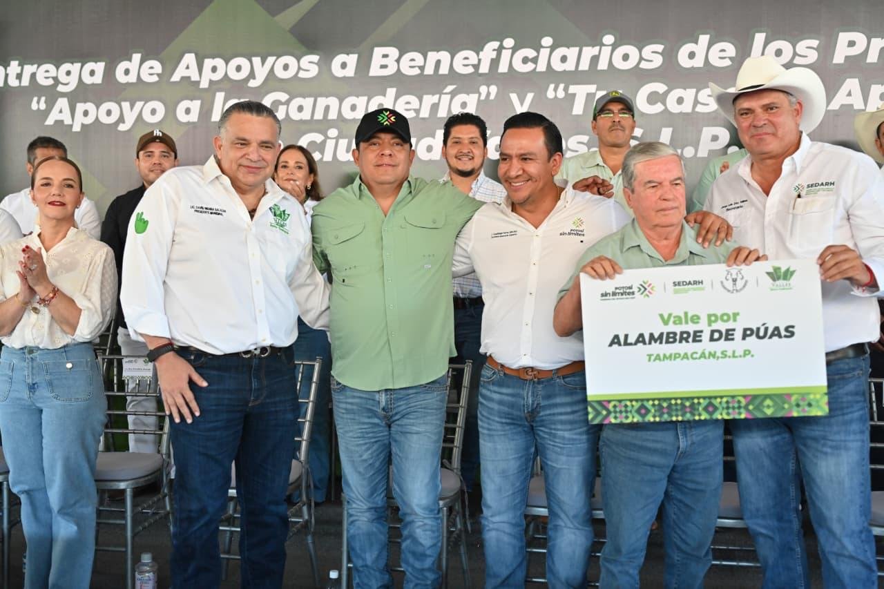 Como parte de la estrategia de rescate al campo que arrancó desde el inicio de su administración, el Mandatario Estatal entregó equipamiento agrícola para 23 asociaciones y la Asociación Ganadera Regional de la Huasteca, con lo que las familias pueden ampliar su producción, tecnificando el campo e impulsando la ganadería de la región.