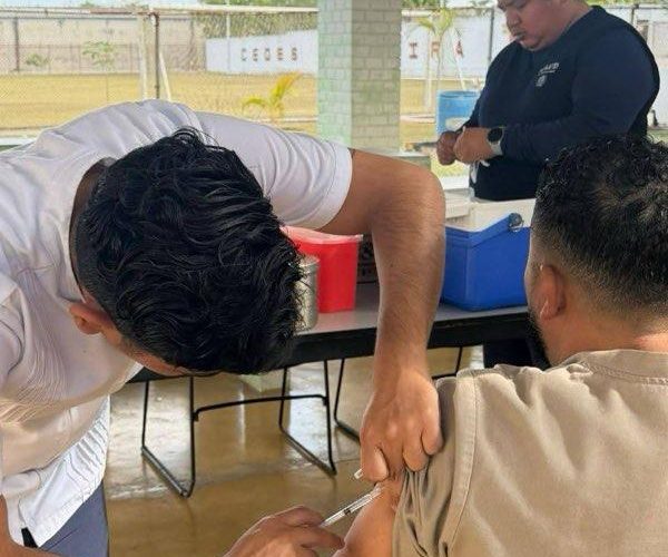 Febrero 19 de 2026 Altamira, Tamaulipas.- Con el objetivo de prevenir brotes de sarampión, el Centro de Ejecución de Sanciones (CEDES) de Altamira llevó a cabo la Campaña de Vacunación contra el Sarampión, mediante la cual fueron inmunizadas 617 Personas Privadas de la Libertad (PPLs). La jornada fue organizada por el Área Médica del CEDES Altamira, en coordinación con la Jurisdicción Sanitaria No. 12, para reforzar las medidas de prevención epidemiológica al interior de los centros penitenciarios, considerados espacios prioritarios para el control de enfermedades. Durante la campaña, personal de enfermería realizó la aplicación ordenada y supervisada de las dosis, garantizando el cumplimiento de los protocolos sanitarios y las normas establecidas por las autoridades de salud, lo que permitió alcanzar una amplia cobertura de vacunación entre los PPLs. Este tipo de acciones contribuyen de manera directa a la protección de los PPLs, reduciendo el riesgo de contagios y fortaleciendo la vigilancia epidemiológica.