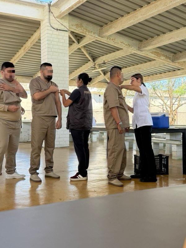 Febrero 19 de 2026 Altamira, Tamaulipas.- Con el objetivo de prevenir brotes de sarampión, el Centro de Ejecución de Sanciones (CEDES) de Altamira llevó a cabo la Campaña de Vacunación contra el Sarampión, mediante la cual fueron inmunizadas 617 Personas Privadas de la Libertad (PPLs). La jornada fue organizada por el Área Médica del CEDES Altamira, en coordinación con la Jurisdicción Sanitaria No. 12, para reforzar las medidas de prevención epidemiológica al interior de los centros penitenciarios, considerados espacios prioritarios para el control de enfermedades. Durante la campaña, personal de enfermería realizó la aplicación ordenada y supervisada de las dosis, garantizando el cumplimiento de los protocolos sanitarios y las normas establecidas por las autoridades de salud, lo que permitió alcanzar una amplia cobertura de vacunación entre los PPLs. Este tipo de acciones contribuyen de manera directa a la protección de los PPLs, reduciendo el riesgo de contagios y fortaleciendo la vigilancia epidemiológica.